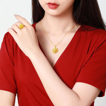 梦金园黄金戒指牡丹花硬金戒指显大指环闭口女戒生日礼物