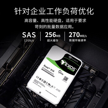希捷(SEAGATE)企业级硬盘16TB 256MB 7200RPM CMR垂直 SAS 希捷银河Exos X18系列 氦气 服务器硬盘ST16000NM004J