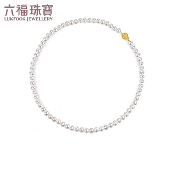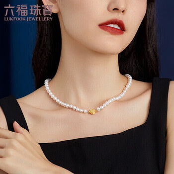六福珠宝 淡水珍珠项链18K金花纹扣颈链礼物女 总重约25.43克