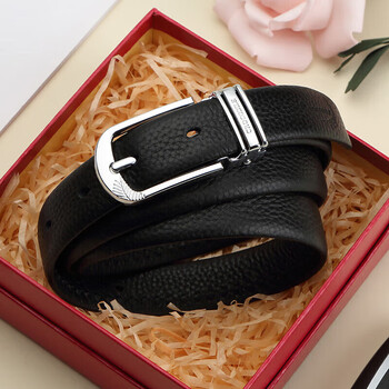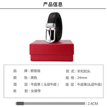 鳄鱼恤真头层牛皮女士针扣皮带百搭腰带女生日礼物送女友T1806黑色