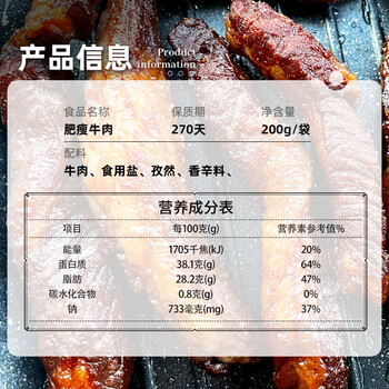 草原村 肥瘦相间风干牛肉干加热食用休闲解馋零食内蒙古特产肉脯200g