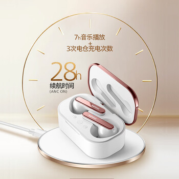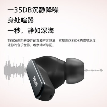 飞利浦(PHILIPS)真无线降噪蓝牙耳机T5506 蓝牙5.2 主动降噪ACC高品质音频无线运动耳机 28h超长续航 白