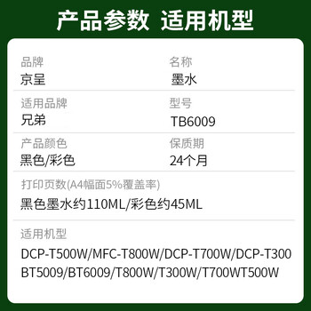 京呈BTD60BK BT5009/6009墨水四色适用兄弟DCP-T425W 426W 725DW T420W T310 710W 720dw T220打印机墨水brother