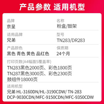 京呈TN287四色大容粉盒适用兄弟HL-3160CDW粉盒HL3190CDW打印机墨粉盒DCP-9030CDN墨盒MFC-9150CDN MFC-9350CDW