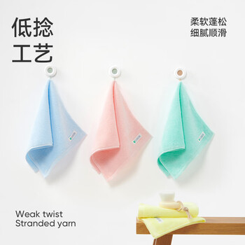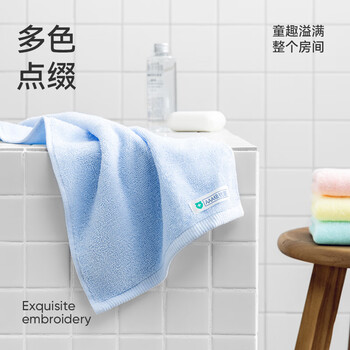 居家布艺---毛巾/浴巾/浴袍---毛巾洁玉孚日洁玉 抑菌儿童毛巾 纯棉超柔洗脸洗澡家用吸水婴儿小面巾4条装 粉/黄/兰/绿 25*50cm 48g/条