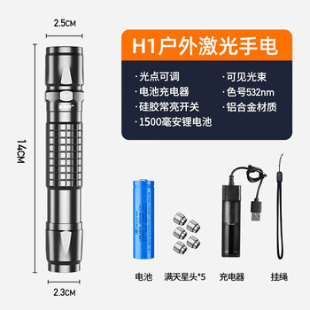 惠斯特H1激光手电×1 ;18650电池×1; 充电器×1; 满天星头×5 ;挂绳*1;
