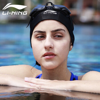 李宁(LI-NING)泳帽男女长发舒适布游泳帽时尚护耳不勒头不粘发泳帽 LSMP151黑色