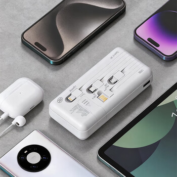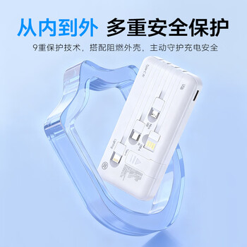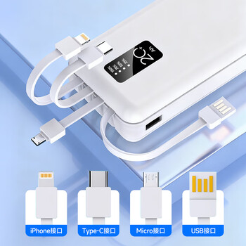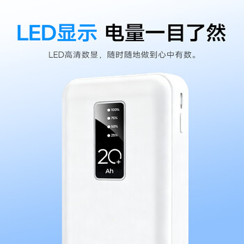 雷摄(LEISE)【3C认证】充电宝20000毫安可上飞机自带线大容量移动电源小巧通用苹果华为小米手机支架 ZJSX02白