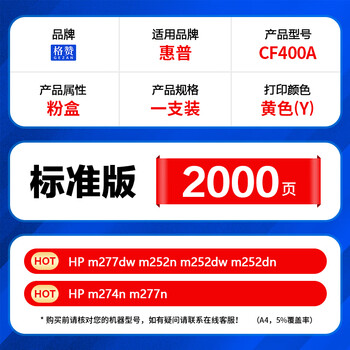格赞CF400A硒鼓黄色201A适用惠普m277dw硒鼓m252n m252dw m252dn m274n m277n墨盒佳能CRG045 mf633cdw粉盒