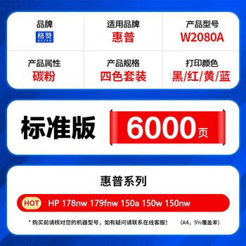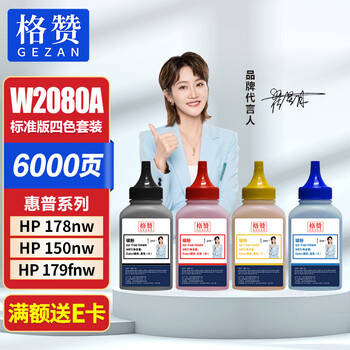 格赞W2080A碳粉四色套装118A 适用惠普HP 178nw 179fnw 150a 150w 150nw LT181 LT1821 CLT-M406S硒鼓粉盒