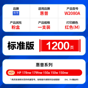 格赞 W2080A硒鼓红色118A 适用惠普HP 178nw硒鼓 179fnw 150a 150w 150nw打印机粉盒墨盒墨粉盒 带芯片