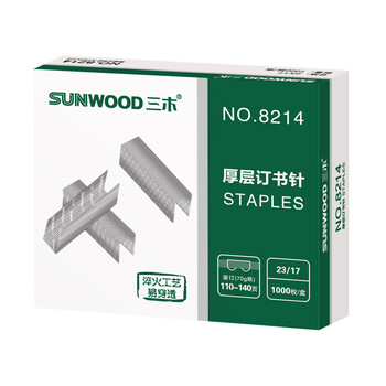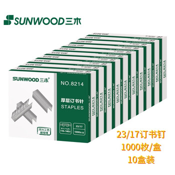 三木(SUNWOOD) 23/17厚层订书钉/订书针/可订140页 1000枚/盒 10盒装 8214
