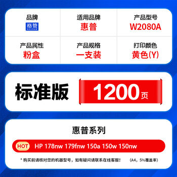 格赞 W2080A硒鼓黄色118A 适用惠普HP 178nw硒鼓 179fnw 150a 150w 150nw打印机粉盒墨盒墨粉盒 带芯片