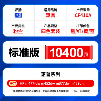 格赞 CF410A硒鼓适用惠普HP m477fdw/dn墨盒m452dn/dw/nw打印机m377dw粉盒佳能CRG046 653Cdw MF732Cdw四色套装