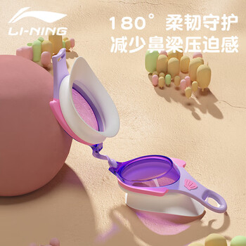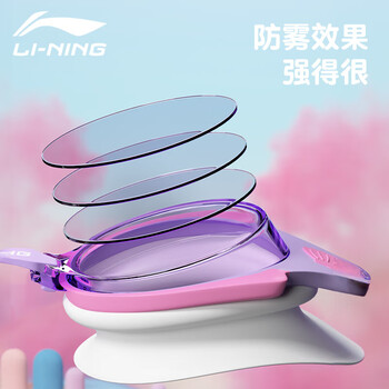 李宁(LI-NING)儿童泳镜 男女童高清防雾舒适防水游泳潜水泳镜泳帽套装705-3雅紫