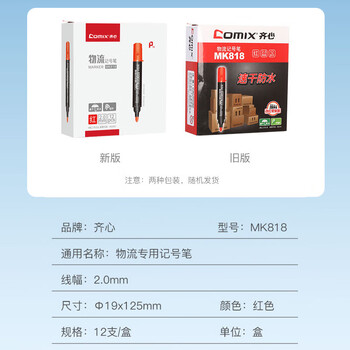 齐心(Comix) 红色粗头物流油性记号笔大头笔 12支/盒 办公文具 MK818