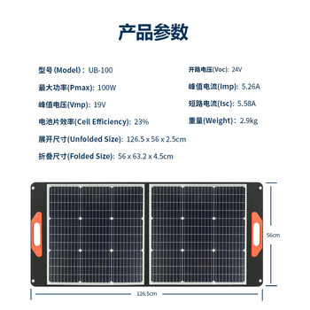 荒野乐太阳能充电板100W瓦可折叠光伏板折叠包快充单晶硅适用户外储能电源手机充电宝户外应急电源
