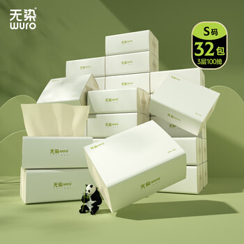 无染wuro本色抽纸 竹浆纸3层100抽*32包S码 纸巾卫生纸餐巾纸面巾纸整箱