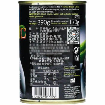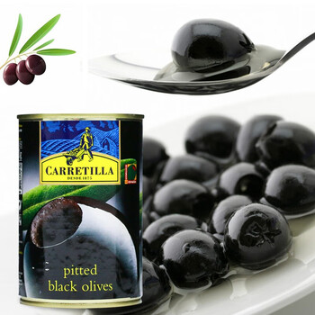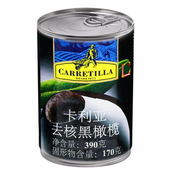 卡利亚西班牙进口 去核黑橄榄(铁罐)沙拉披萨无核黑水榄西餐用390g