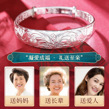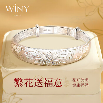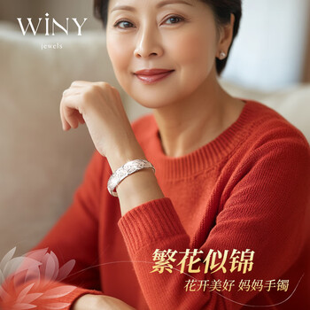 唯一(Winy)银手镯女款足银9999实心镯子老人正品纯银饰品生日礼物送妈妈长辈