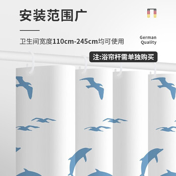 RIDDER 德国进口浴帘防水不霉浴室卫生间隔断洗澡淋浴动感海豚180*200cm