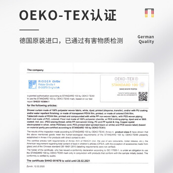 RIDDER 德国进口浴帘防水卫生间洗澡淋浴隔断动感3D 180*200cm
