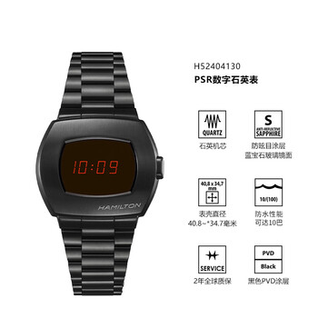 汉米尔顿(Hamilton)PSR数字石英表红字小黑块手镯式钢链腕表男士石英手表男款礼物