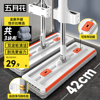五月花平板拖把42cm3布家用一拖净免手洗2026吸水拖地神器拖布墩布