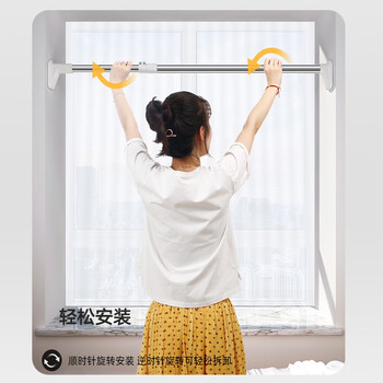 美居客 晾衣杆 伸缩杆 免打孔不锈钢衣柜撑杆多功能固定式单杆1.5-2.6M