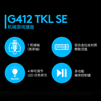 罗技(G)G412TKL有线键盘 背光灯效 电竞游戏吃鸡LOL 便携紧凑机械轴(类茶轴)无小键盘 87键
