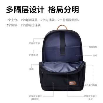 高尔夫(GOLF)双肩包男士大容量背包男15.6英寸电脑学生书包轻便防泼水旅行背包