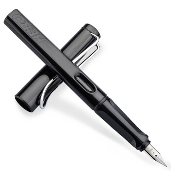 英雄(HERO) 钢笔359 正姿 黑色 F尖薄厚片工艺学生练字(附加6支墨囊颜色随机)铱金钢笔签字笔
