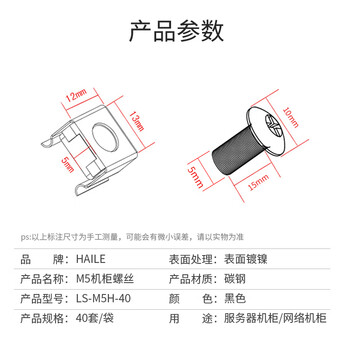 HAILE机柜螺丝M5 高品质机柜专用十字螺丝黑色 40套/袋LS-M5H-40