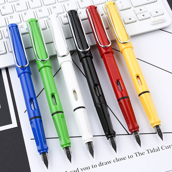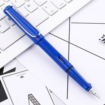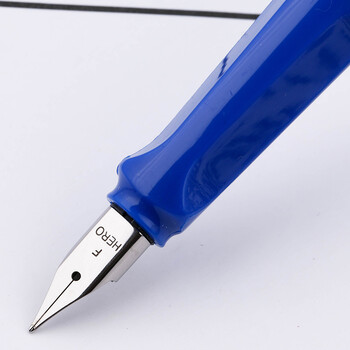 英雄(HERO)钢笔359 正姿 天蓝色 F尖薄厚片工艺学生练字钢笔 (附加6支墨囊颜色随机)铱金钢笔签字笔