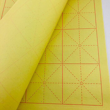 芬尚 加厚八开15格毛边纸 学生毛笔书法课堂练习用米格纸黄色书法纸格宽6.8cm/36张 36*25cm