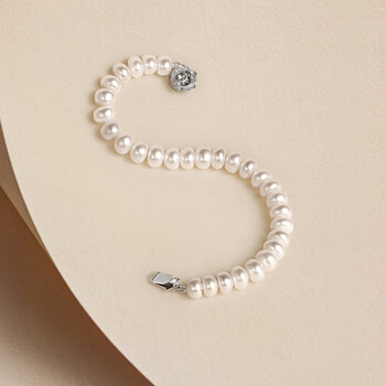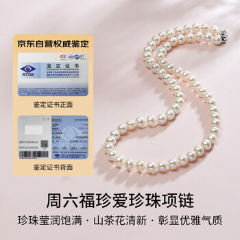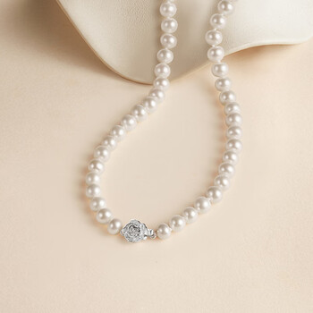 周六福银扣山茶花珍珠项链妈妈生日礼物 椭圆形约6.3mm 项链 45cm