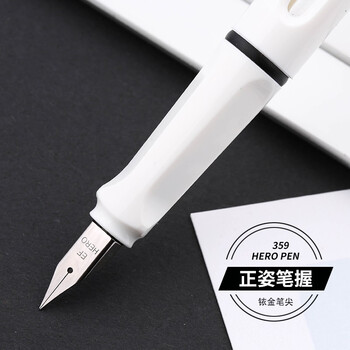 英雄(HERO)钢笔359 正姿 白色 EF尖薄厚片工艺学生练字钢笔 (附加6支墨囊颜色随机)铱金钢笔签字笔