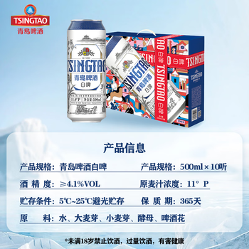 青岛啤酒(TsingTao)全麦白啤 精酿白啤 500ml*10听 礼盒装踏春送礼
