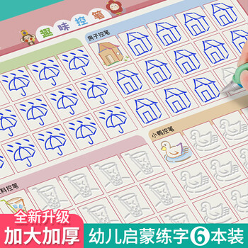 绍泽文化儿童字帖学前班幼儿启蒙3-8岁初学握笔器凹槽练字帖控笔训练笔画偏旁英语拼音数字 笔顺160字