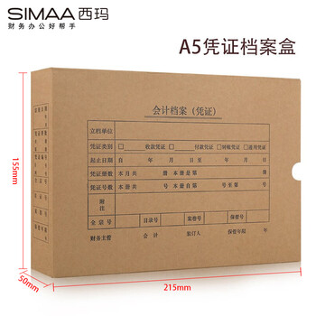西玛(SIMAA)A5财务凭证装订盒单封口 10个/包 215*155*50mm记账凭证纸档案装订盒SZ600370