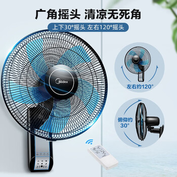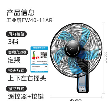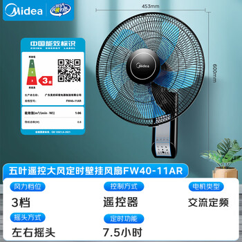 美的(Midea)【五叶飓风】工业遥控壁扇/挂壁式商居两用风扇/120°广角摇头定时电风扇/工厂通风吊扇 FW40-11AR