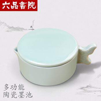六品书院陶瓷墨池多功能墨汁专用带盖墨盒砚台文房四宝书法毛笔笔搁学生练字舔毛笔字大容量洗笔缸墨水墨碟