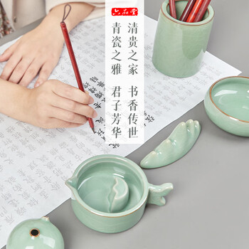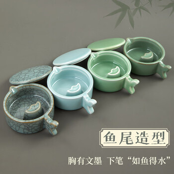 文教文化用品---文房四宝---文房配件---笔洗六品书院mc003多功能陶瓷墨池-哥梅(冰裂纹)