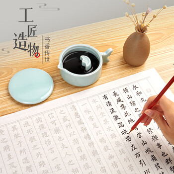 六品书院陶瓷墨池多功能墨汁专用带盖墨盒砚台文房四宝书法毛笔笔搁学生练字舔毛笔字大容量洗笔缸墨水墨碟