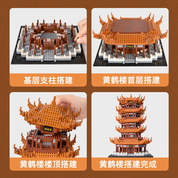 糖米 TEMI积木城堡拼装玩具黄鹤楼微颗粒拼插玩具儿童男女孩节日生日礼物