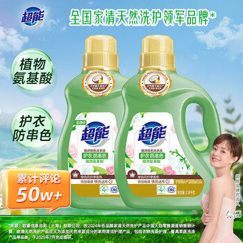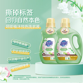 超能 植沐悦色洗衣液 绿色风铃草 3.38kg*2瓶 植物氨基酸 护衣防串色
