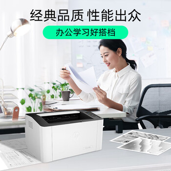 HP Laser 108w激光打印机*1、预装惠普黑色硒鼓(1.5K页)*1、安装指南*1、参考指南*1、监管要求说明*1、电源线*1、USB数据线*1