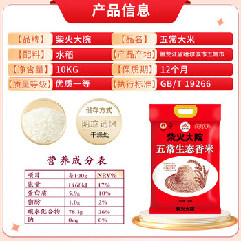 柴火大院当季新米 五常生态香米 五常大米 20斤 (东北大米 10kg)