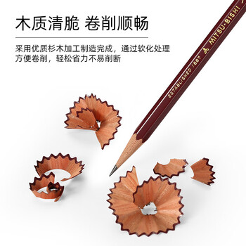 uni三菱 金装铅笔2B 原木杆铅笔书写绘画设计专用 12支/盒(含橡皮)1887