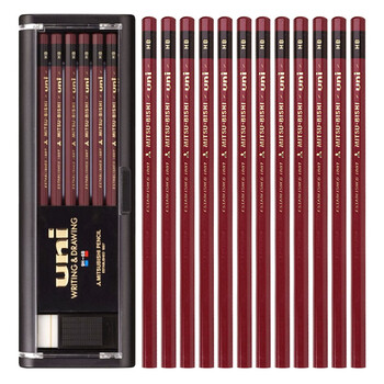 uni三菱 金装HB铅笔 原木杆铅笔书写绘画设计专用 12支/盒(含橡皮)1887